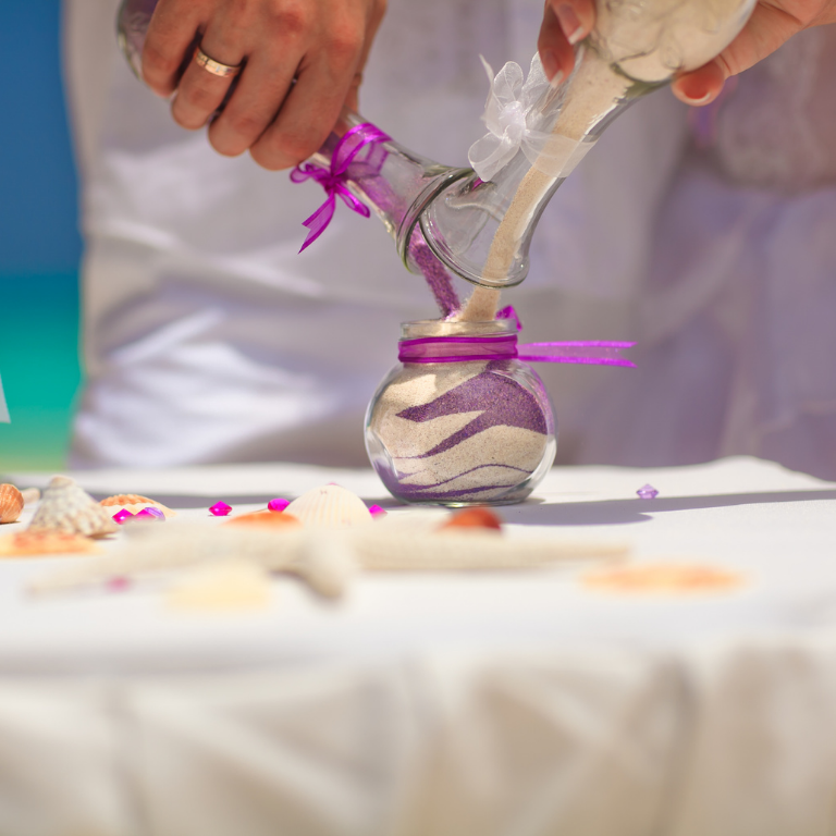 The Sand Unity Ritual - where coloured sands are merged together by the couple or their families, symbolizing their union.